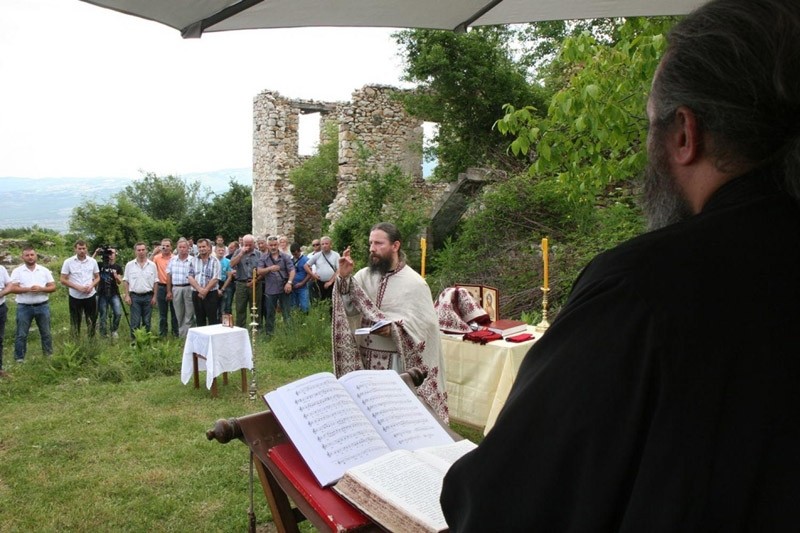 With the blessing of Bishop Teodosije of Raska-Prizren, the brothers of Visoki Dečani Monastery have been coming here for the past few years on the day of Pentecost to cut the overgrowth of grasses and serve the Divine Liturgy under the open skies. Serbs who used to live in this region also come to pray, along with other guests.