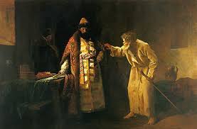 «Μεγαλειότατε, σὲ σένα δὲν ἀναγνωρίζει πιὰ κανένας ἕναν τσάρο. Ἡ ὄψη τοῦ προσώπου σου εἶναι σκοτεινή. Ἀπὸ τότε ποὺ λάμπει ὁ ἥλιος στὸν οὐρανό, ποτὲ δὲν εἶδε ὁ κόσμος τοὺς εὐλαβεῖς βασιλιάδες νὰ θαμπώνουνε μ᾿ αὐτὸν τὸν τρόπο τὴν ἐξουσία τους. Οἱ ὀρθόδοξοι χριστιανοὶ ὑποφέρουν. Ἐπιτελοῦμεν ἐδῶ, σ᾿ αὐτὴ τὴν ἁγία Τράπεζα, μιὰ ἀναίμακτη θυσία γιὰ τὴ σωτηρία τῶν ἀνθρώπων καὶ ἔξω ἀπὸ τὴν ἐκκλησία χύνονται αἵματα, πεθαίνουν ἀθῶοι ἄνθρωποι. Λησμόνησες πὼς καὶ σὺ ἔχεις ἀπάνω σου τὴ μοίρα ποὺ ἔχουν ὅλοι οἱ ἄνθρωποι καὶ πὼς ἔχεις χρέος νὰ ζητήσης τὴ συγχώρηση τῶν ἁμαρτιῶν σου; Οἱ Τάταροι κ᾿ οἱ εἰδωλολάτρες ἔχουνε ἕνα νόμο καὶ μία δικαιοσύνη. Μὰ στὴ Ρωσία δὲν ὑπάρχει πιὰ δικαιοσύνη. Σ᾿ ὅλον τὸν κόσμο, οἱ κατάδικοι ζητοῦν νὰ τοὺς σπλαγχνισθοῦν οἱ βασιλιάδες καὶ τοὺς δίνουνε συγχώρηση. Ἀλλὰ στὴ Ρωσία δὲν ὑπάρχει πιὰ εὐσπλαγχνία, μήτε γιὰ τοὺς ἀθώους καὶ γιὰ τοὺς δίκαιους. Ὁ Θεὸς σὲ ὕψωσε σὲ τοῦτον τὸν κόσμο, ἐν τούτοις εἶσαι πάντα ἕνας ἄνθρωπος θνητὸς καὶ θὰ σοῦ ζητήσῃ ἀπόκριση γιὰ τὸ αἷμα τῶν ἀθώων. Οἱ πέτρες ποὺ εἶναι κάτω ἀπὸ τὰ πόδια σου θὰ φωνάξουν, ἂν οἱ ζωντανοὶ σωπαίνουν, γιὰ νὰ σὲ κατηγορήσουν καὶ νὰ σὲ κρίνουν. Ἔχω χρέος νὰ σοῦ μιλήσω μ᾿ αὐτὸν τὸν τρόπο καὶ νὰ σοῦ πῶ τὴ θέληση τοῦ Θεοῦ κι᾿ ἂν ἀκόμα ὁ θάνατος θὰ εἶναι ἡ πληρωμὴ γι᾿ αὐτὸ ποὺ κάνω».